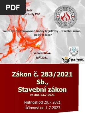 Ke konci července 2021 vstoupil v platnost nový stavební zákon, který ve sbírce zákonů můžeme najít pod číslem 283/2021... Zákon nabývá na účinnosti postupně, protože bude docházet k velkým systémovým změnám, například ke vzniku nových úřadů. Července 2023, nicméně některé pasáže jsou účinné již nyní. Ke konci července 2021 vstoupil v platnost nový stavební zákon, který ve sbírce zákonů můžeme najít pod číslem 283/2021. Časová osa nástupu nového stavebního zákona obsahuje 4 záchytné body: 30.07.2021 · (1) tento zákon upravuje působnost orgánů státní stavební správy, orgánů územního plánování a orgánů územní samosprávy v oblasti územního plánování a stavebního řádu, stanoví cíle, úkoly a nástroje územního plánování, požadavky na výstavbu a stavební … Zákon bude účinný až 1. Zákon bude účinný až 1.